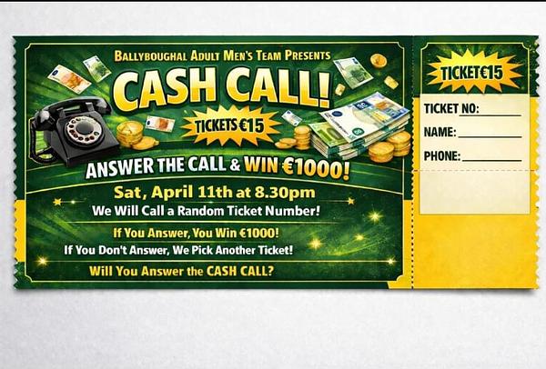 The Ballyboughal Men’s 1st Team is bringing the excitement straight to your phone this weekend with our CASH CALL FUNDRAISER! 🟢⚪️