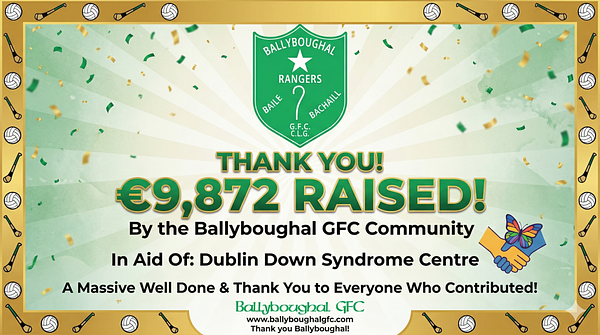 We are absolutely blown away. Because of your incredible support, Ballyboughal GFC has officially raised โฌ9,872 for the Dublin Down Syndrome Centre!